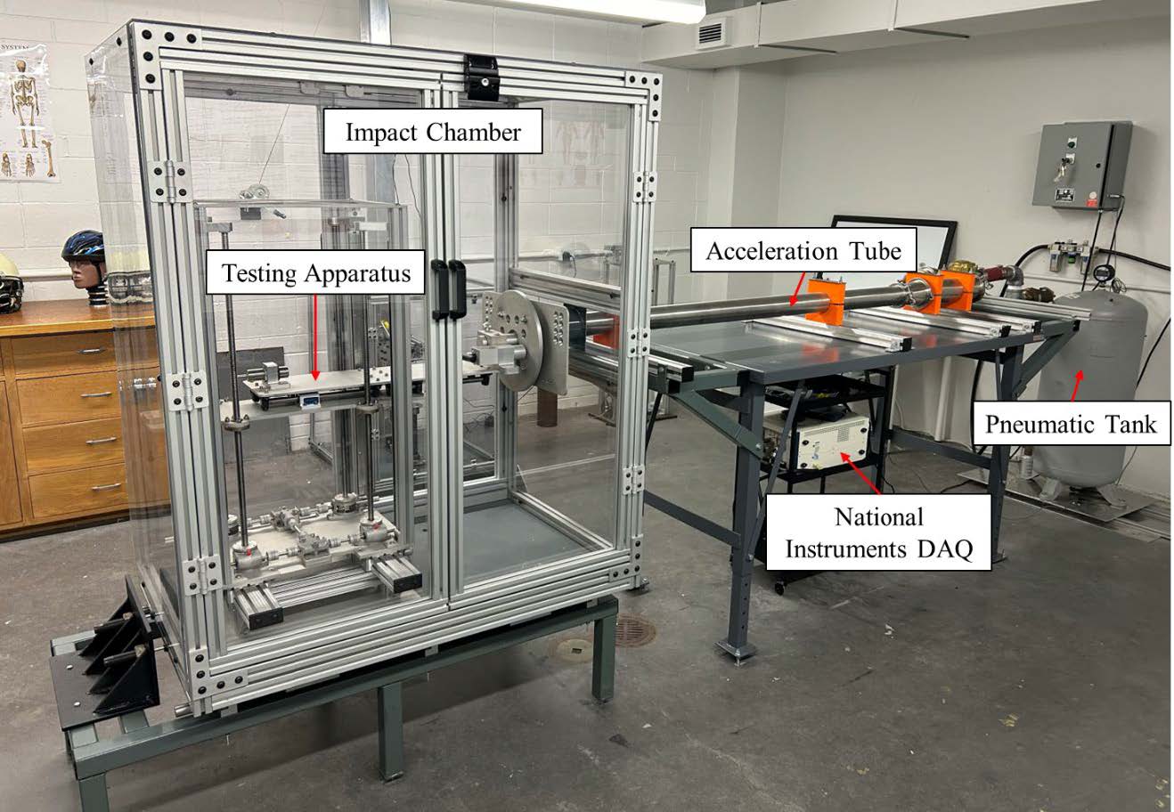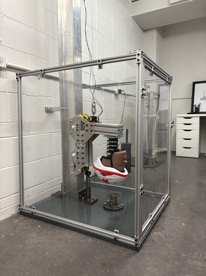 This piece of equipment can apply larger amounts of energy at speeds up to 6 m/s to evaluate the protective capacity of equipment. Please reach out to Dr. Cheryl Quenneville (quennev@mcmaster.ca) for additional information on the test setup.